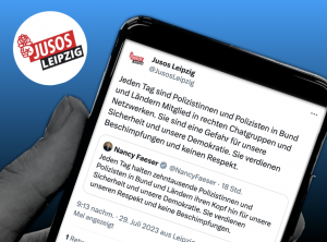 In einem unfassbaren Tweet bezeichnet der offizielle Account der Jusos Leipzig die Polizei als „eine Gefahr für die Demokratie“ - und widersprechen damit Nancy Faeser, die Polizisten gegen Beschimpfung in Schutz nahm.