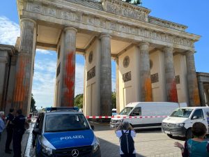 Die „Letzte Generation“ hat das Brandenburger Tor am Sonntag mit Farbe beschmiert. Alle Säulen des berühmten Wahrzeichens sind betroffen. Weitere Aktionen sollen ab Montag folgen. Apollo News war vor Ort.