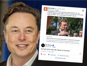 Nach Elon Musk Twitter-Streit mit dem Auswärtigen Amt wegen eines Tweets der deutsche „Seenotretter“ und deren Unterstützung durch die deutsche Regierung kritisierte, titelte der Spiegel, dass Musk „Verschwörungsmythen“ verbreite. Nun schießt Musk auf deutsch zurück.