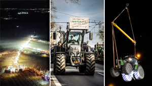 Auch am Wochenende rissen die Bauernproteste nicht ab, tausende Traktoren waren unterwegs: Supermarktlager wurden blockiert, riesige Rückstaus entstanden, auch Medienhäuser wurden versperrt und eine leuchtende Choreografie auf dem Heuchelberg durchgeführt.
