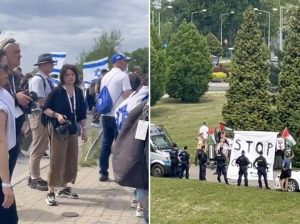 Anlässlich des Holocaust-Gedenktages wollten tausende Israelis, darunter Holocaust-Überlebende und Überlebende des Massakers am 7. Oktober, von Auschwitz nach Birkenau laufen - doch pro-palästinensische Demonstranten versuchten sie dabei zu stören.