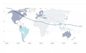 Die Geburtenrate in den OECD-Ländern hat sich in den letzten 60 Jahren mehr als halbiert, von durchschnittlich 3,3 Kindern pro Frau im Jahr 1960 auf nur noch 1,5 im Jahr 2022.
