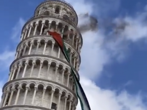 Riesige Palästinenser-Flagge und Rauchbomben auf dem Schiefen Turm von Pisa