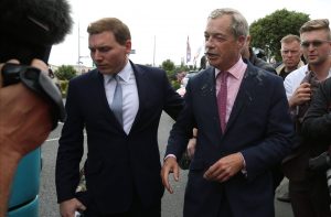 Erneut gab es eine Attacke auf den britischen Politiker Nigel Farage. Mit einem Kaffeebecher und nassem Zement wurde er bei einem Wahlkampfstopp angegriffen.