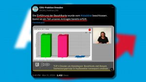 Im Dresdner Stadtrat haben CDU, FDP und Freie Wähler für einen Bezahlkarten-Antrag der AfD-Fraktion gestimmt und die Forderung so mit einer Stimme Vorsprung durchgesetzt.