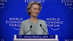 Die größte Herausforderung unserer Zeit sei Desinformation, meint Ursula von der Leyen auf dem Weltwirtschaftsforum. Konflikte würden erst daraus entstehen, so die CDU-Politikerin. Es sei an der Zeit für globale Partnerschaften, „und wir schaffen das“, meint von der Leyen.