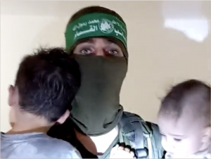 Die Hamas hat auf einem ihrer Telegram-Kanäle ein Propaganda-Video verbreitet, das offenbar entführte israelische Kleinkinder zeigt. Die Terroristen missbrauchen die Kinder, teils wenige Monate alte Babys, um sich als „gnädig“ zu inszenieren.