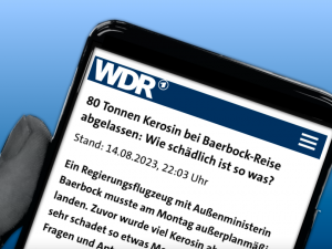 Der Regierungsflieger von Annalena Barbock hat in 24 Stunden über 160 Tonnen Kerosin abgelassen. In alter Treue erklärt der WDR: Das sei gar nicht schlimm für’s Klima.
