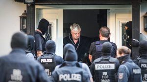 Bestens vorbereitet stehen Polizei und Presse vor der Tür des Compact-Herausgebers Jürgen Elsässer. Die Beamten tragen Sturmhauben, die Journalisten haben den perfekten Winkel, um diesen erniedrigenden Moment festzuhalten. Es ist ein Bild der Schande für den Schutz der Persönlichkeitsrechte.USA