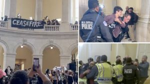 In Washington D.C. kam es zu Festnahmen als eine große Gruppe von israelfeindlichen Demonstranten die Rotunde eines Kapitol-Gebäudes besetzte und zum Teil die Polizisten vor Ort angriff. Bei einer dazugehörigen Demo, wo auch „Dekolonialisierung“ gefordert wurde, sprach auch die linksradikale Abgeordnete Rashida Tlaib.