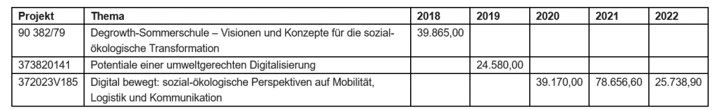 Das einzige Projekt, dass das Umweltbundesamt vom Konzeptwerk Neue Ökonomie in seiner Datenbank listet, ist die Sommerschule Degrowth aus dem Jahr 2018. Diese wurde mit 39.865 Euro Steuergeldern gefördert. In der Sommerschule Degrowth geht es, wie der Name schon verrät, um eine „Abkehr vom Wachstumsparadigma“ und eine „sozial-ökologische Transformation“. Daneben fand auch die Veranstaltungsreihe „Zurück zur Zukunft“ mit insgesamt fünf Veranstaltungen statt, die ebenfalls zu dem geförderten Projekt gehört, aber primär nichts mit der Sommerschule selbst zu tun hat.