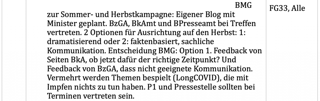 Auch das findet in jenem Protokoll Erwähnung. Bevor das RKI vor „Schreckensszenarien“ gewarnt hatte, hatten die Krisenstabsmitglieder festgehalten: „Vermehrt werden Themen bespielt (Long-COVID), die mit Impfen nichts zu tun haben“. Auch das verwundert nicht: Rund 65 Millionen Menschen hatten zu diesem Zeitpunkt bereits mindestens eine Covid-Impfung erhalten, die Sommerwelle 2022 war gerade gebrochen, und Covid-19 schien die Menschen immer weniger zu interessieren.