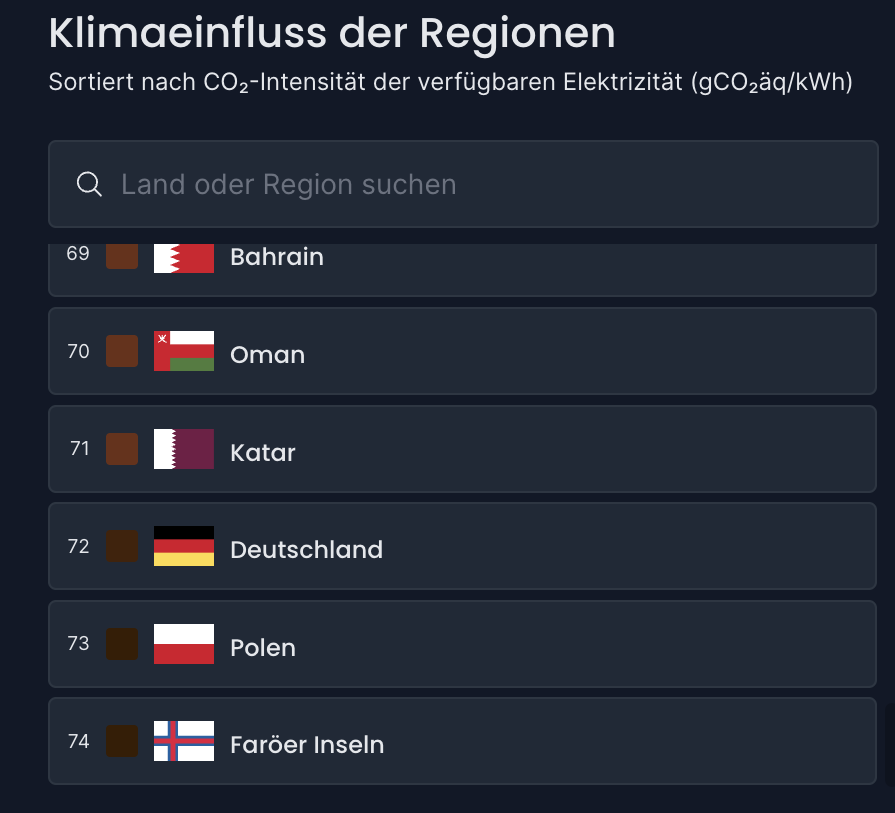 Und so ist es auch kein Wunder, dass wir trotz Milliardenausgaben für die Energiewende, das Land sind, was nach Polen am meisten CO2 in der Stromproduktion verbraucht. Nur Polen und die Färöer Inseln hat in den letzten 24 Stunden mehr Gramm CO₂ pro produzierter Kilowattstunden in die Luft gesetzt als wir.