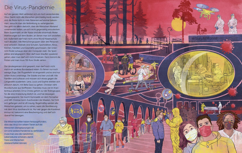 Doch es kommt noch besser: „Die Wissenschaftler haben herausgefunden, dass das Virus von wilden Tieren auf die Menschen übergesprungen ist“, deshalb „muss man also die natürlichen Lebensräume schützen, damit Tiere und Menschen Abstand halten können“. Ohne Umwelt- und Klimaschutz droht also die nächste Pandemie – oder noch schlimmeres.