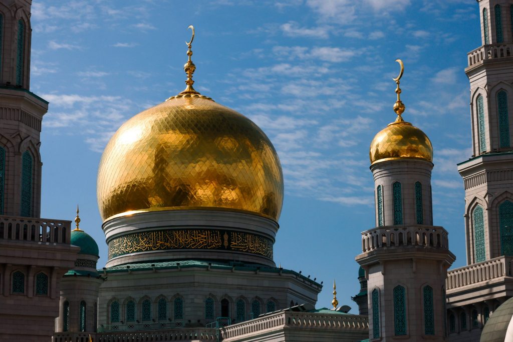 In der Realität sieht all das anders aus. Wer Putin als Verteidiger des Abendlandes sieht, würde bei einem Moskau-Besuch ziemlich überrascht werden: Mitten in der Stadt thront eine goldene Kuppel und ein großes Minarett. Es handelt sich um die Jumah-Moschee. Mit ihrer 46 Meter hohen Kuppel und ihren großen Minaretten ist sie im Stadtbild Moskaus unübersehbar. Zu dem Komplex gehören mehrere Gebets- und Konferenzräume, ein Hotel sowie Bibliotheken. Eine Art riesige Islam-Zentrale, mitten im so christlichen Moskau?