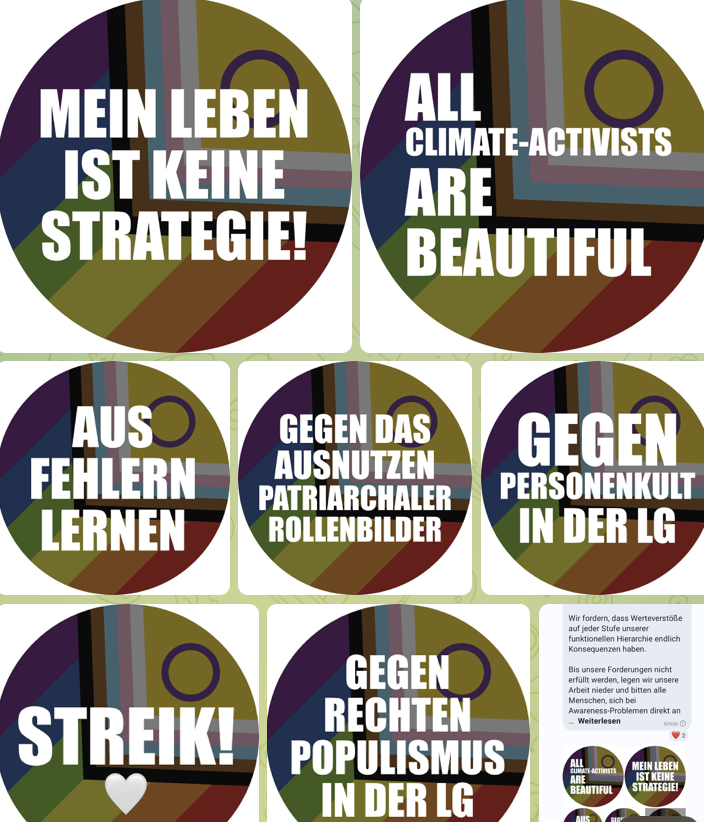 Carla Hinrichs von der mutmaßlich kriminellen Vereinigung Letzte Generation bekommt eine Bühne bei Hart aber fair. Sie nutzt diese, um ihre Weltuntergangstheorien in die Welt zu setzen. Zum Schluss gibt sie offen zu, dass ihre Aktionen funktionieren, weil sie es damit in die Sendung geschafft hat - Klamroth steht als williger oder naiver Helfershelfer der Kriminellen da.Um sich dem Streik symbolisch anzuschließen hat das „Awareness-Team“ Grafiken erstellt. Auf diesen steht unter anderem „Gegen Personenkult in der LG“ oder „Mein Leben ist keine Strategie“. Immer mehr Aktivisten in den Chat-Gruppen nutzen diese Bilder als Profilbilder um sich zu solidarisieren.