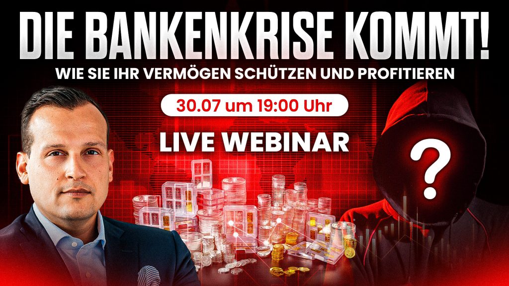 Genau darüber werden wir in unserem exklusiven Webinar am 30. Juli 2024 um 19:00 Uhr sprechen. Dominik Kettner, Geschäftsführer von Kettner Edelmetalle und renommierter Edelmetall-Experte, wird gemeinsam mit einem noch geheimen Gast – einem Insider aus der Bankenwelt – tief in die Hintergründe der drohenden Finanzkrise eintauchen.