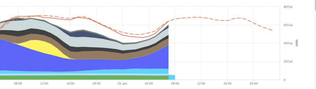 Ein Donnerstag der Offenbarung: Den gesamten Tag lang war Deutschland auf Stromlieferung seiner Nachbarn, besonders Frankreich, angewiesen, um den eigenen Strombedarf zu decken. Zwischenzeitlich stammten 19,4 Prozent des in Deutschland verbrauchten Stroms aus dem Ausland, bis in die Nacht hinein waren es konstant über 10 Prozent an Stromimporten.