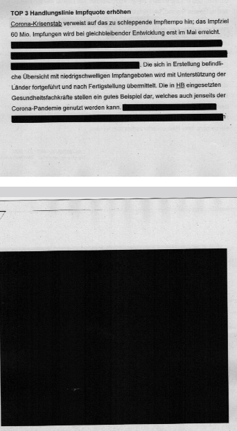 Würde „öffentliche Sicherheit gefährden“ – Coronakrisenstab-Protokolle zu Impf-Druck großflächig geschwärzt